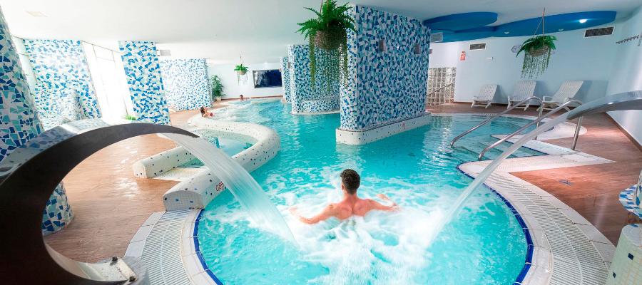 The hydrothermal circuit of the Biomar Spa Roquetas lasts about 90 minutes & is the heart of our wellness centre: hydromassage beds, neck water jets, waterfalls, Turkish bath...